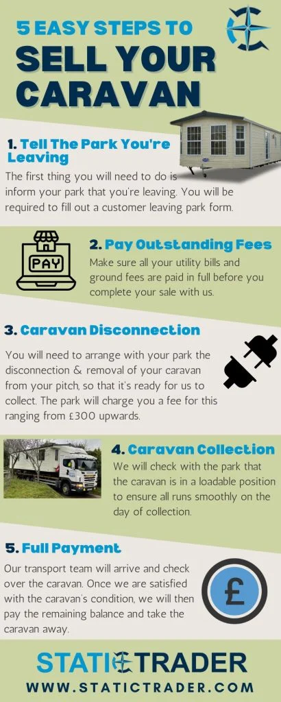 You must arrange with the park for the disconnection and removal of your caravan from its allocated pitch so it is ready for collection.